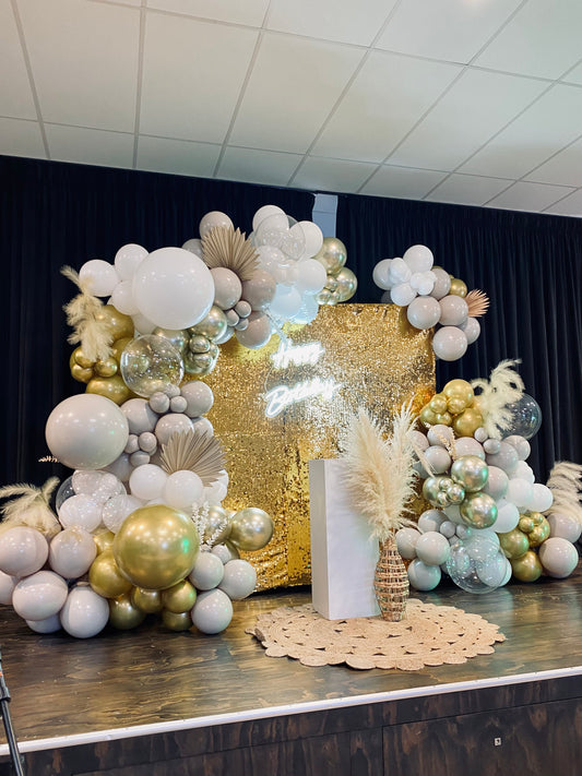 Our backdrop designs are customized and uniquely created with your theme in mind. We’ll work with you through inspirational images, colors, and provide a mockup after booking of your final design. Our balloons and backdrops are known for creativity, attention to detail, and to be the WOW factor at every event.